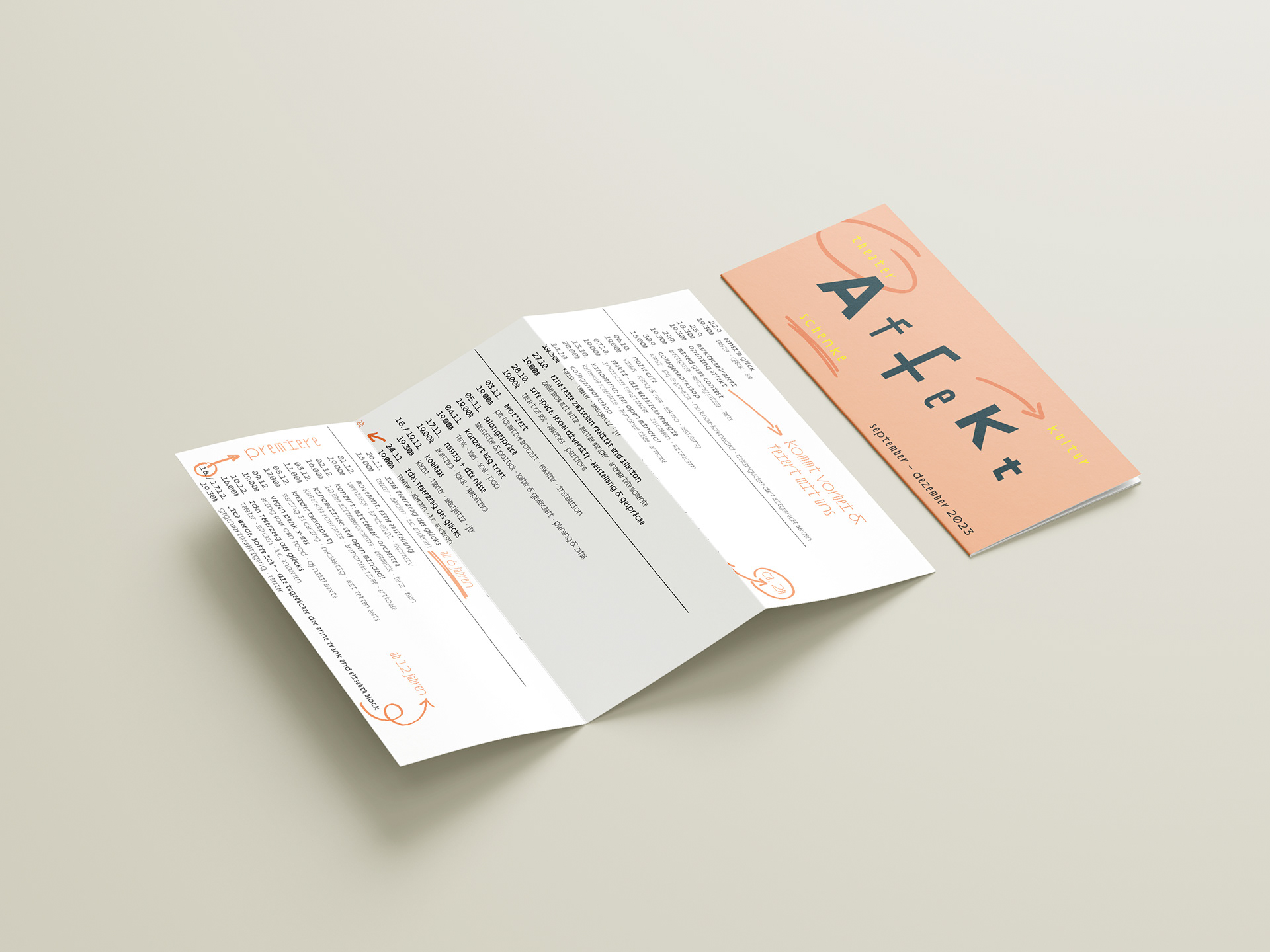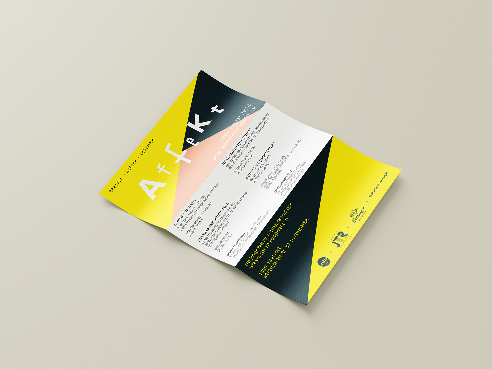 Typografie wird lebendig: mal laut, mal leise, unkonventionell. Layout und Bildsprache transportieren den experimentellen Charakter der Zwischennutzung (affekt-rosenheim.de). Ein Flyer, der Kultur sichtbar macht und zum Entdecken einlädt. Entstanden im Rahmen meiner Ausbildung beim designbüro x-height.