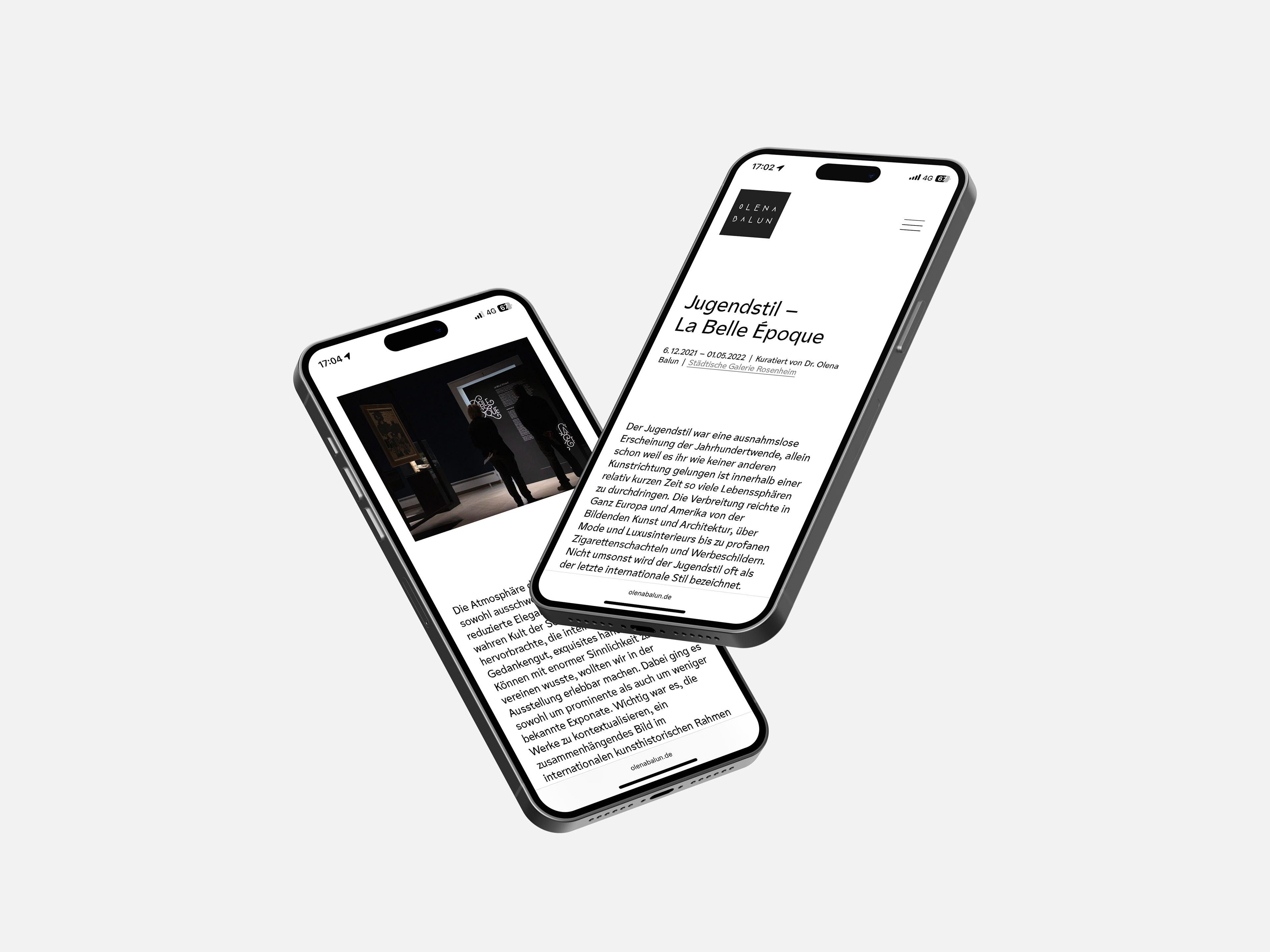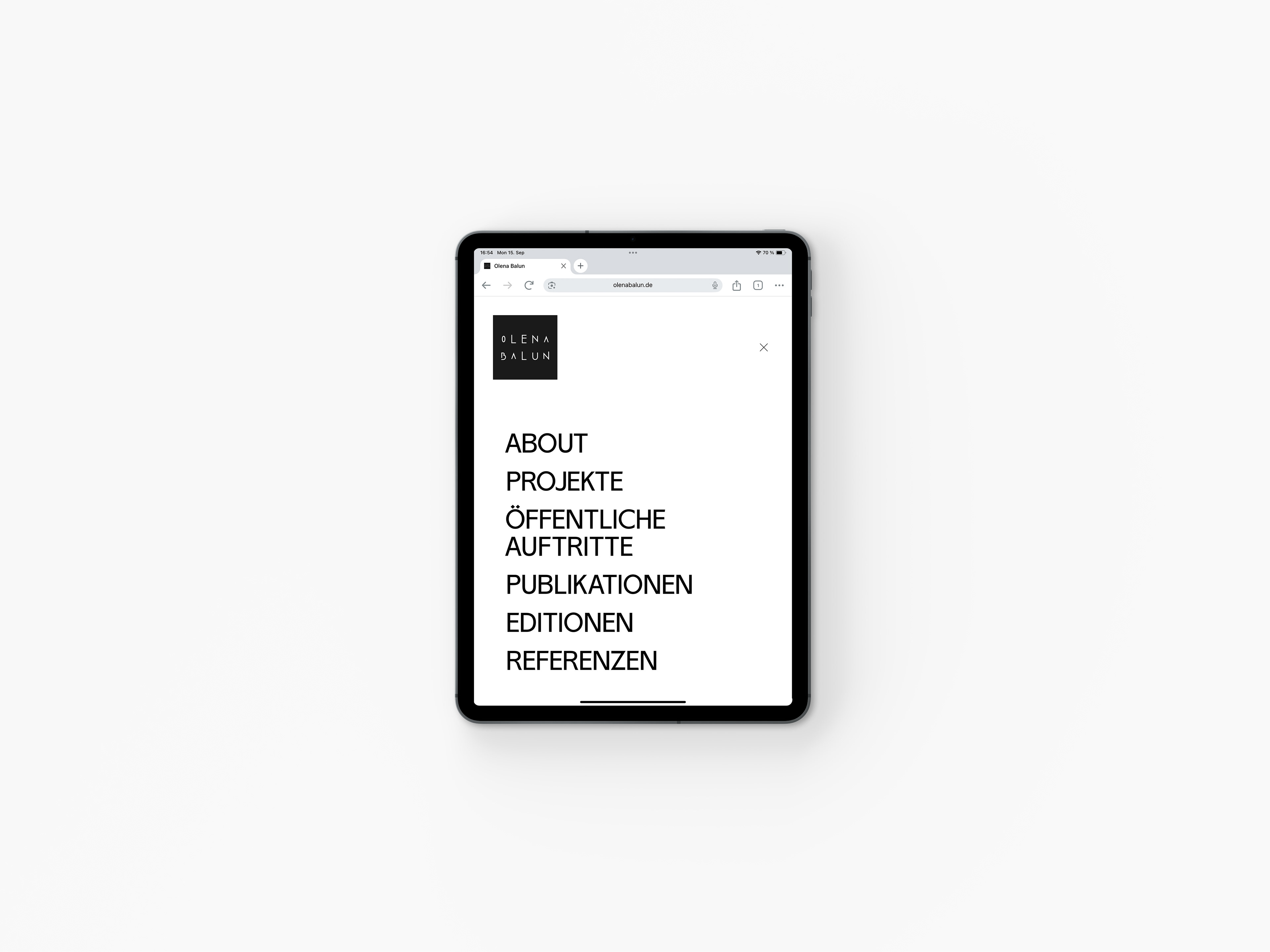 Eine Squarespace-Website (www.olenabalun.de), die komplexe Inhalte leicht zugänglich macht. Viel Text, viele Informationen – aber in einer klaren Struktur, die durch großzügige Weißräume und begleitende Bilder aufgelockert wird. Texte erzählen, Bilder atmen. Entstanden im Rahmen meiner Ausbildung beim designbüro x-height.